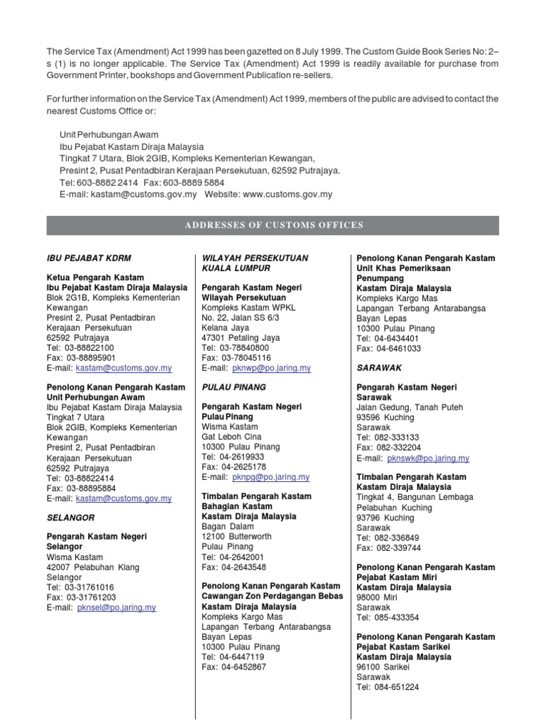 Jalan Dato Onn 50480. Contact Us Jabatan Kastam Diraja Malaysia Kompleks Kementerian Kewangan No 3 Persiaran Perdana Presint 2 62596 Putrajaya Hotline. - Laman Web.